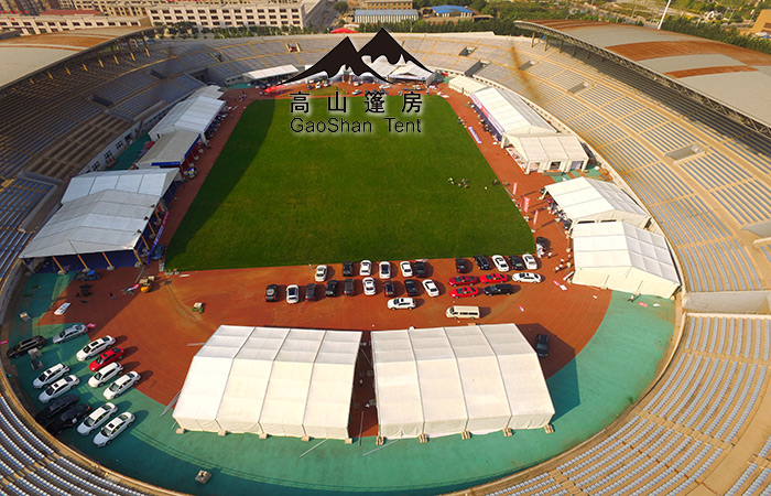 體育賽事篷房的魅力并不全在于外觀,更在于便捷性。對于不同場地的大小,可以自由組合篷房的間數和不同賽事的需求。對于場地的地面無論是沙地,草地,水泥地還是如大理石那樣不可破壞的地面,體育賽事篷房可以用膨脹螺絲、鋼釬以及承重盤,使篷房能夠安全穩固的進行搭建和使用,保證體育賽事的順利進行。